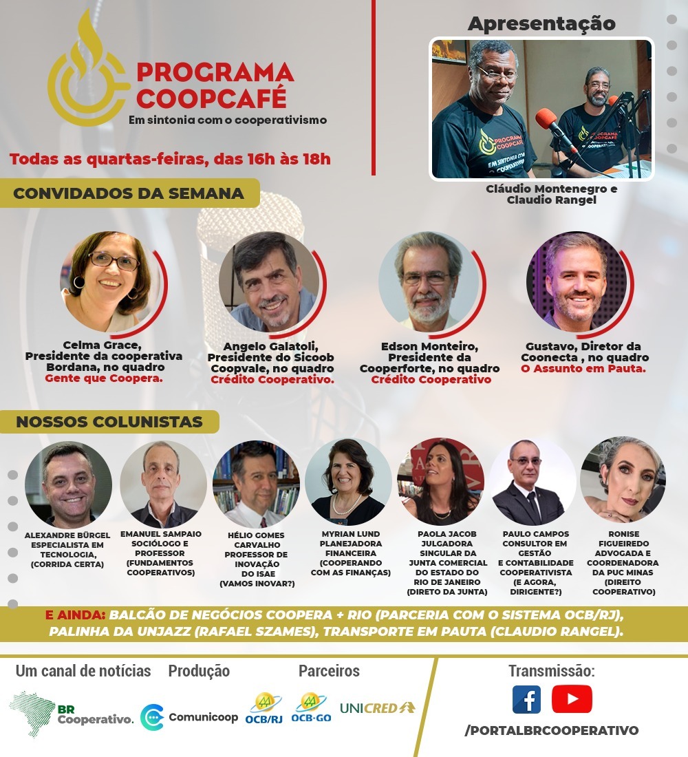 E teremos ainda os nossos colunistas fixos do Programa CoopCafé.