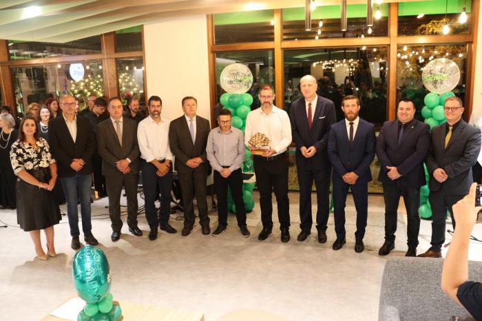 O presidente do Conselho de Administração da Sicredi, Tiago Luiz Schmidt, e o diretor Executivo da Sicredi, Solon Stapassola Stahl, receberam o Troféu das mãos dos nove parlamentares. A homenagem é de autoria dos vereadores Professor Daniel (PT) e Renan Sartori (MDB) e foi aprovada por unanimidade.